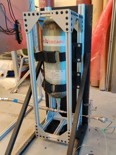 I began as a propulsion subteam member during its inaugural year, where I designed and manufactured the first oxidizer mass cradle. At the time, we used a scuba tank as our initial pressure vessel. When no one else volunteered to work on the fluid systems, I took responsibility for helping design and full assembly of the valve control panel. I cut and swaged nearly all of the tubing myself, gaining hands-on experience with compressed gases, fittings, and engine plumbing. After a full year of design and testing, the team completed its first successful hot-fire in August 2024.